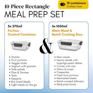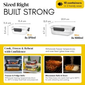 Straame Glass Meal Prep Containers with Airtight Lids – Set of 10 – Reusable Glass Food Storage Containers with Lids – Leakproof, Freezer, Oven, Microwave & Dishwasher Safe